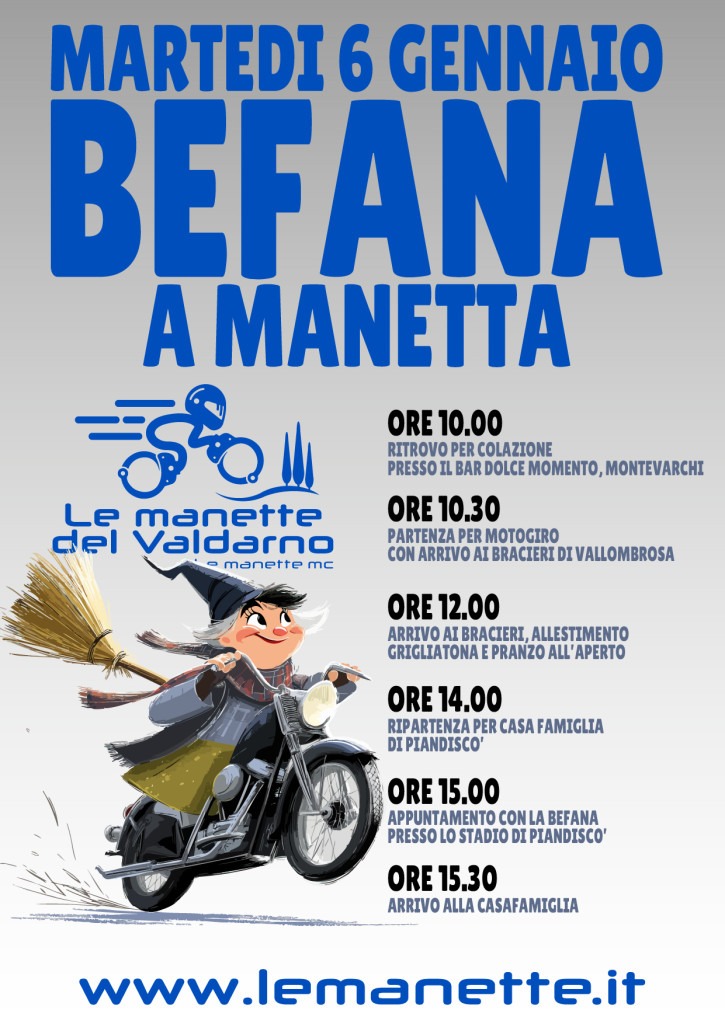 Rieccoci Manette! Archiviati panettoni e pandori (e forse qualche chilo di troppo), è ora di rimettere in moto le nostre amate due ruote per il primo, grande evento dell’anno: la Befana a Manetta!